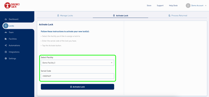 4. Once you’ve added your lock, click “Activate Lock”.