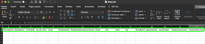 • If via CSV: download the CSV file, add facility management software information, and save.